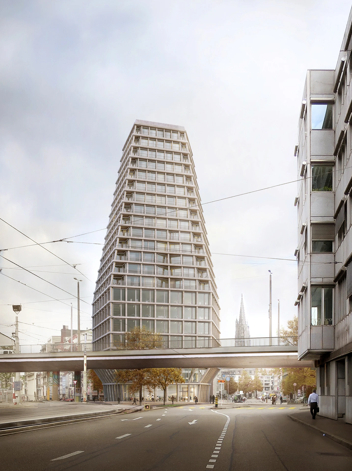 Für den Neubau wurde 2017 ein Architekturwettbewerb durchgeführt, den die Basler Architekten Miller & Maranta für sich entschieden. Das neu freistehende Hochhaus schafft eine städtebauliche Aufwertung an der Heuwaage und einen Mehrwert für die gesamte Steinenvorstadt sowie die Basler Bevölkerung. Das umlaufend zugängliche Erdgeschoss mit einem Platzbereich zur Steinenvorstadt bildet den Auftakt zur städtebaulichen Entwicklung des Heuwaage-Areals und des gesamten Birsig-Bogens. Zur Steinenvorstadt hin entsteht ein Platz, der zum Verweilen einlädt.